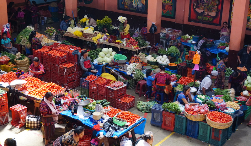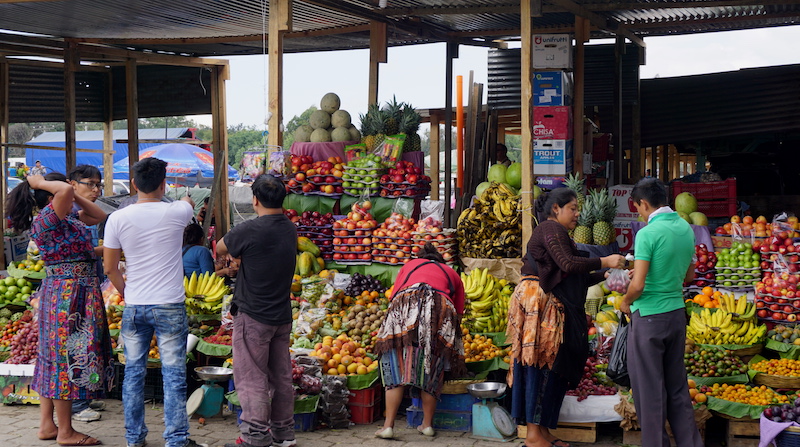 Just a few steps to the left of the church, in the old Municipality of Pop-Wuj building, is a busy indoor market for local shoppers that sells produce, meat and dairy products, along with cheaply-made shoes, jewellery, backpacks, toys, plastics and other imported goods for the home. I thought this was a little more off the beaten track for tourists until I found a whole walking tour of them gawking from the top floor. I didn’t linger for too long — I was much more interested in the outdoor food court behind the market, where there was not another visitor in sight.