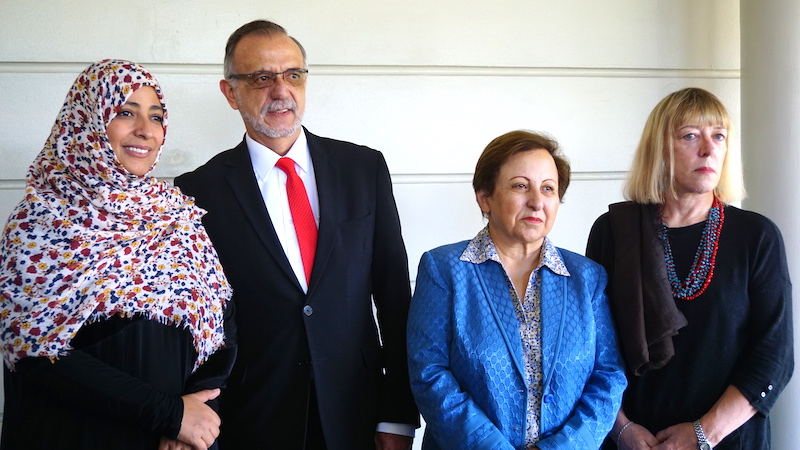 The Canadian embassy in Guatemala was nervous about having journalists attend a luncheon with the Nobel laureates that afternoon, and swiftly enacted the Chatham House Rule, which means the identity and affiliation of anyone quoted must be kept a secret. It was a beautiful embassy, with a well-lit reception room and courtyard overlooking lush green mountains.