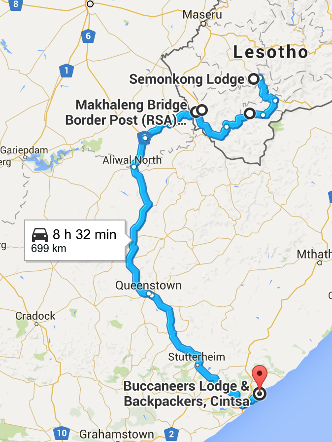 This was our longest and most ambitious day of driving, adding up to more than 12 hours in total. From the Makhaleng Bridge in Lesotho, we drove straight to Chintsa, our first point on the Garden Route along the Wild Coast. Our phones were now back online, and we booked a hotel room on the road.